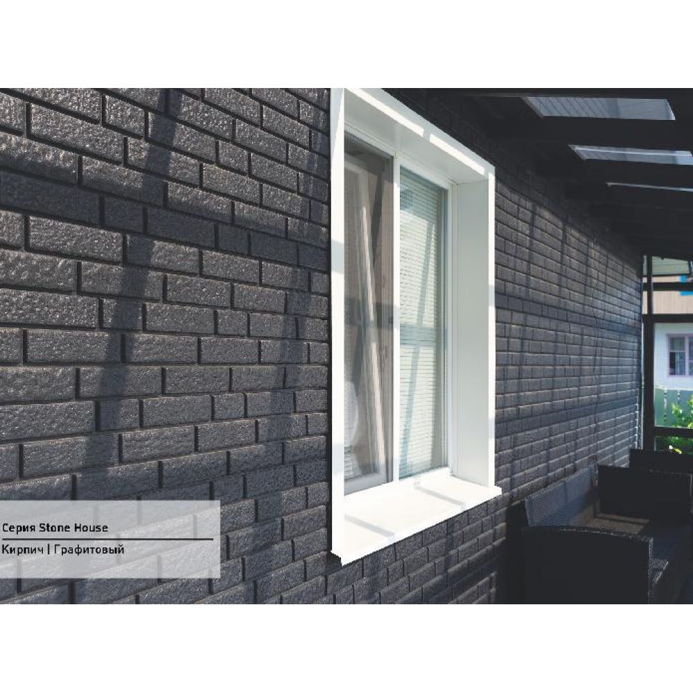 Фасадная панель Стоун Хаус - Кирпич Графит , можно купить в интернет магазине Сайдинг-Маркет, от производителя Ю-Пласт. Доставим быстро и по всей России. Цена производителя. Все в наличии на складе и на заказ. Гарантия. Заходи — выбирай!